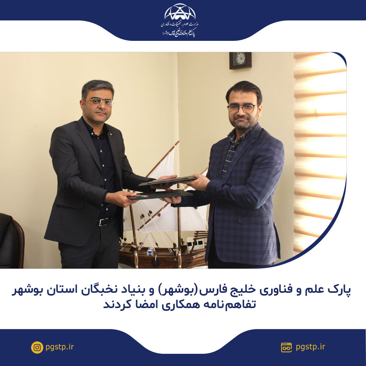 گفتنی است: اجرای طرح شهید احمدی روشن و حمایت از نخبگان از جمله مباحث مهمی بود که در این جلسه بحث و بررسی شد و در پایان نشست، تفاهم نامه همکاری پارک علم و فناوری خلیج فارس (بوشهر) با بنیاد نخبگان استان بوشهر به امضا رسید.